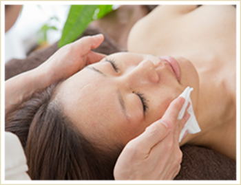 有効成分を充分に浸透させた後は、ローション、クリーム、UVクリームでお肌を整え、保護していきます。コースは以上で完了です。 |