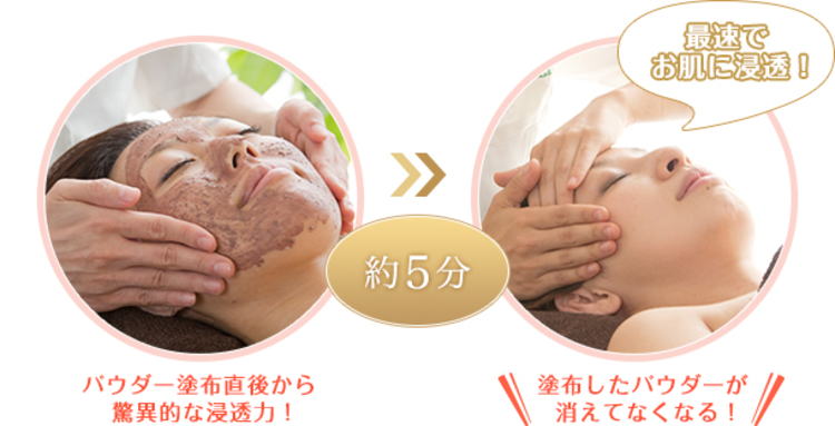 この美肌パックはオプションなので、御希望がなければすぐにパウダーを拭き取って仕上げになりますが、微粒子パウダーを入れ込んだ直後に、さらにこの美肌パックを上から被せることで、効果をアップさせる事が出来ます。